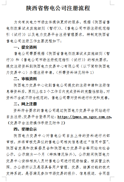 陜西常態(tài)化開(kāi)展售電公司市場(chǎng)注冊(cè)工作(附流程)