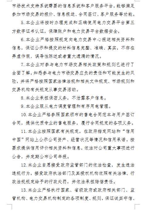 (一)各售電公司對(duì)注冊(cè)資料的真實(shí)性和合法性負(fù)責(zé),并承擔(dān)相應(yīng)法律責(zé)任。