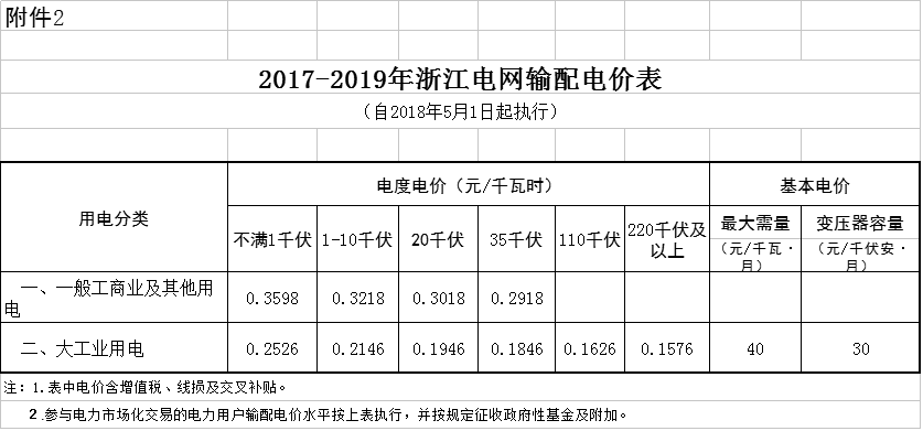 附件:1.浙江省電網(wǎng)銷售電價表