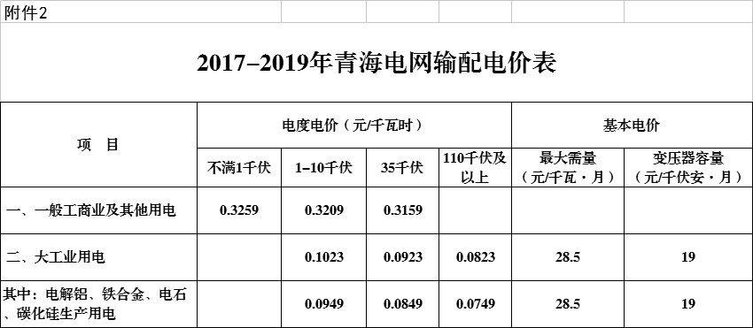 二、調(diào)整后的青海電網(wǎng)一般工商業(yè)目錄電價和輸配電價自2018年7月1日起按附件執(zhí)行。