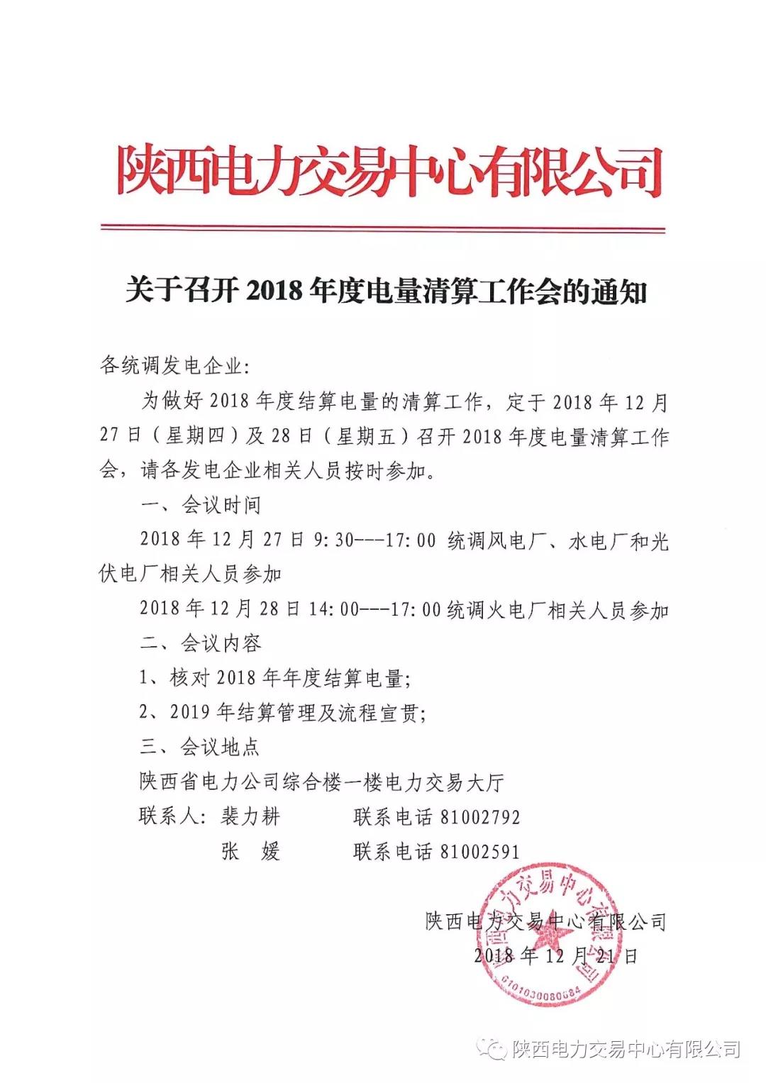 陜西關(guān)于召開2018年度電量清算工作會(huì)的通知
