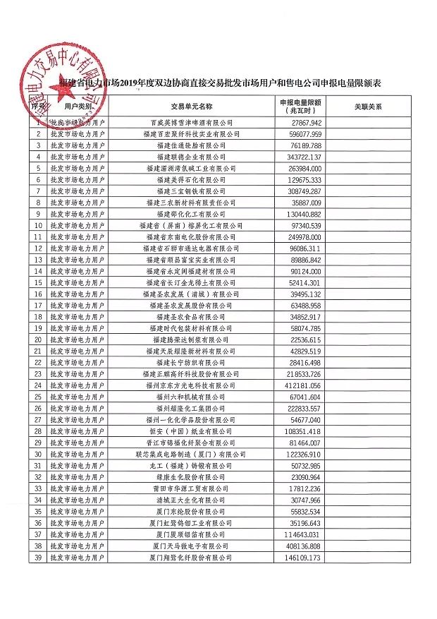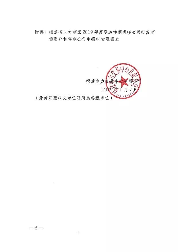福建電力交易中心日前發(fā)布了《關(guān)于發(fā)布2019年度雙邊協(xié)商直接交易申報(bào)電量限額的通知》