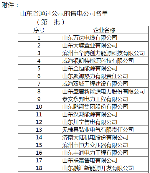 山東新增29家售電公司參與售電(附名單)