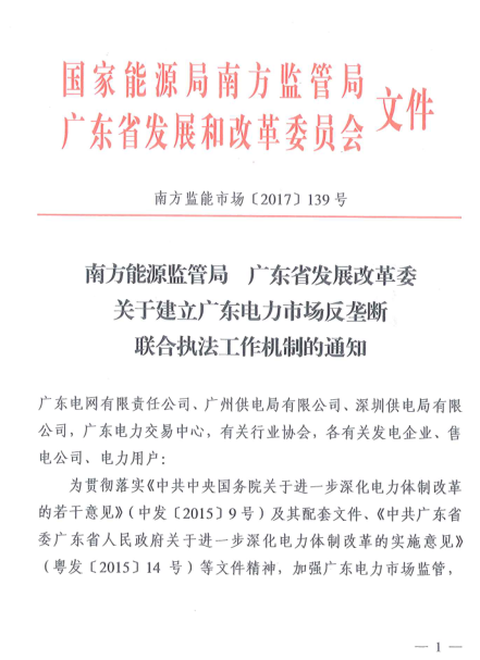 6月7日,南方能源監(jiān)管局、廣東省發(fā)改委聯(lián)合下發(fā)了《關(guān)于建立廣東電力市場(chǎng)反壟斷聯(lián)合執(zhí)法工作機(jī)制的通知》,信息量大。
