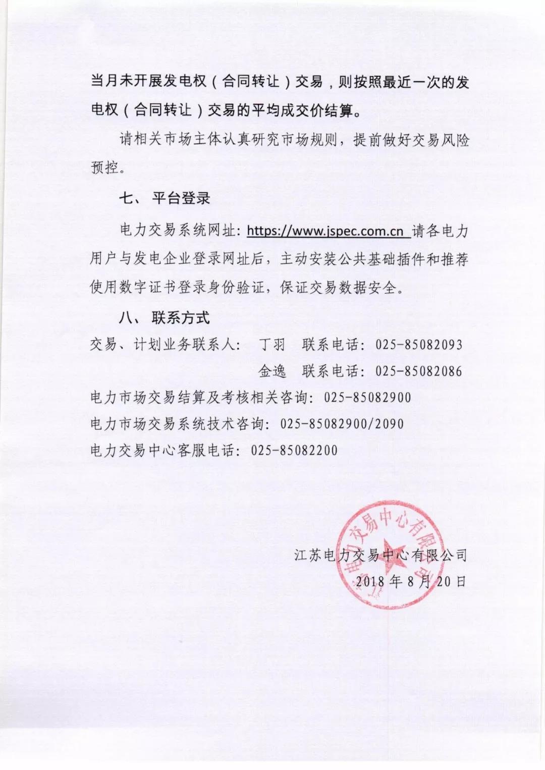 2018年9月份江蘇省電力集中競價交易公告