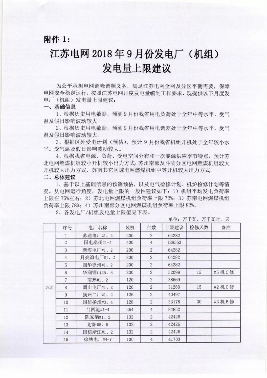 2018年9月份江蘇省發(fā)電企業(yè)合同電量轉(zhuǎn)讓及發(fā)電權(quán)交易公告