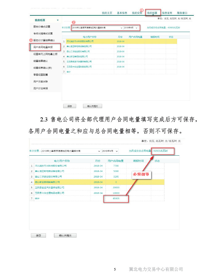 冀北電力交易中心購售電服務價格確認及用戶合同電量填報交易平臺線上操作指引