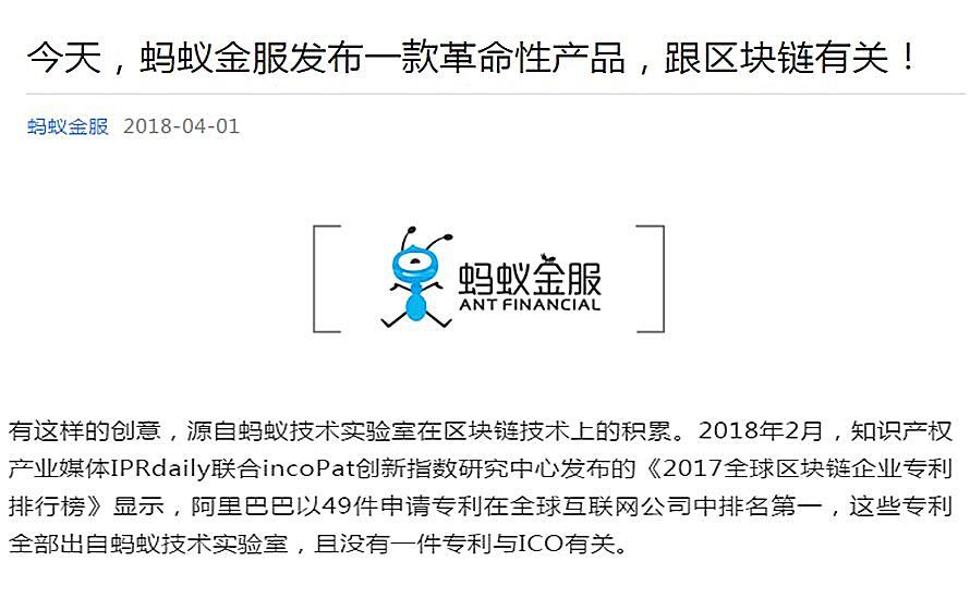 螞蟻金服區(qū)塊鏈專(zhuān)利申請(qǐng)數(shù)量全球第一,但沒(méi)有一件和ICO(Initial Coin Offering)有關(guān)。