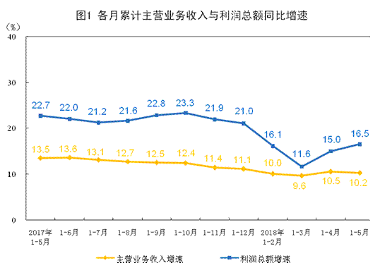 國家統(tǒng)計局6月27日發(fā)布的工業(yè)企業(yè)財務(wù)數(shù)據(jù)顯示,2018年1-5月份,全國規(guī)模以上工業(yè)企業(yè)利潤同比增長16.5%,增速比1-4月份加快1.5個百分點;其中,5月份增長21.1%,比4月份增速減緩0.8個百分點,延續(xù)了快速增長的勢頭。