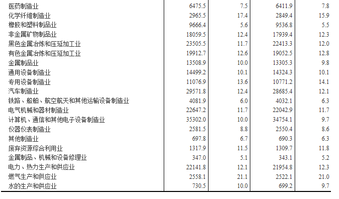 1-5月份,在41個工業(yè)大類行業(yè)中,31個行業(yè)利潤總額同比增加,10個行業(yè)減少。主要行業(yè)利潤情況如下:煤炭開采和洗選業(yè)利潤總額同比增長14.8%,石油和天然氣開采業(yè)增長2.6倍,農(nóng)副食品加工業(yè)增長1.3%,石油、煤炭及其他燃料加工業(yè)增長27.9%,化學(xué)原料和化學(xué)制品制造業(yè)增長27.7%,非金屬礦物制品業(yè)增長44.6%,黑色金屬冶煉和壓延加工業(yè)增長1.1倍,通用設(shè)備制造業(yè)增長9.6%,專用設(shè)備制造業(yè)增長22.2%,汽車制造業(yè)增長0.5%,電氣機械和器材制造業(yè)增長1.9%,計算機、通信和其他電子設(shè)備制造業(yè)增長4.3%,電力、熱力生產(chǎn)和供應(yīng)業(yè)增長27.8%,紡織業(yè)下降0.1%,有色金屬冶煉和壓延加工業(yè)下降11.5%。