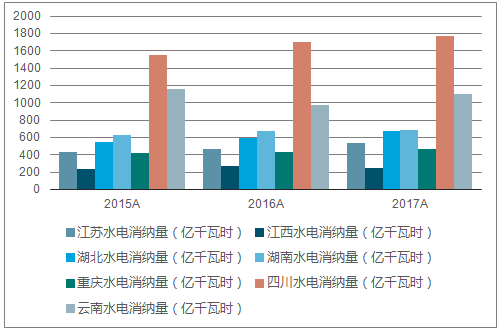 2015-2018年中國(guó)長(zhǎng)江流域各省市水電消納量(億千瓦時(shí))