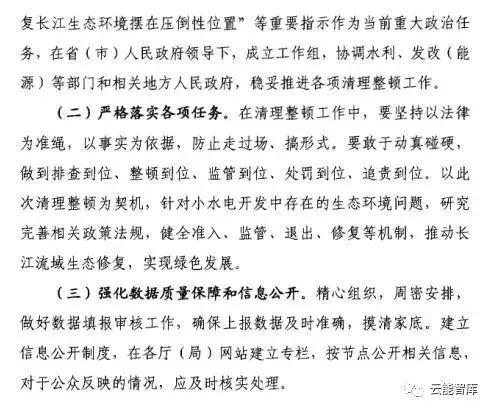 通知要求,全面排查長(zhǎng)江經(jīng)濟(jì)帶范圍的上海、江蘇、浙江、安徽、江西、湖北、湖南、重慶、四川、貴州、云南等11?。ㄊ校┬∷姡êL(zhǎng)江水系以外的小水電,小水電是指單站裝機(jī)容量在5萬(wàn)千瓦及以下的水電項(xiàng)目)開發(fā)及環(huán)評(píng)管理情況。針對(duì)未批先建、生態(tài)環(huán)境破壞嚴(yán)重、監(jiān)管不到位等問(wèn)題,實(shí)施分類清理整頓,同步開展生態(tài)修復(fù),依法嚴(yán)厲查處,嚴(yán)肅追責(zé)問(wèn)責(zé)。