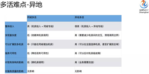 上圖是同城和異地多活不同的點,復(fù)雜性和可拓展性對架構(gòu)的影響方面會有很大的不同。