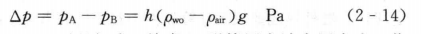 因?yàn)镻wo>>pair,可以忽略,故當(dāng)U形管壓力計(jì)中用水為工作液時(shí),壓差為