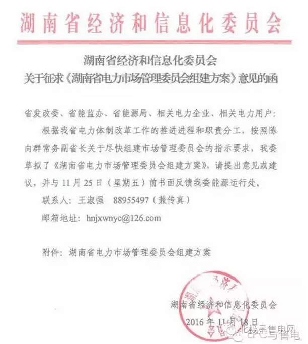 湖南省電力市場管理委員會組建方案(征求意見稿)