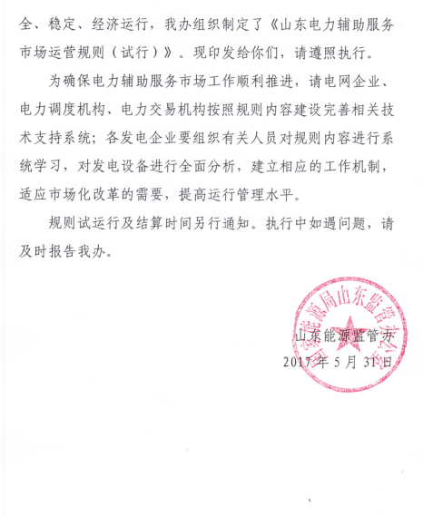《山東電力輔助服務(wù)市場(chǎng)運(yùn)營規(guī)則(試行)》印發(fā)