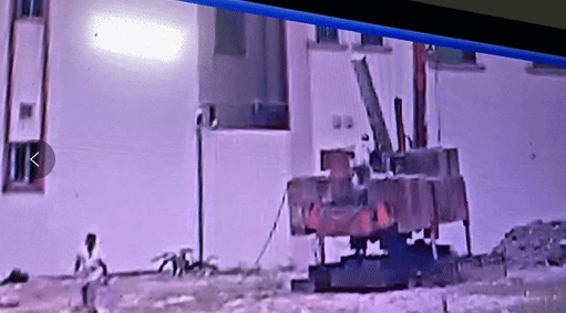 從監(jiān)控視頻中看到,一名工人正在樁機(jī)上工作,忽然面前的預(yù)制樁突然倒塌折斷,當(dāng)時(shí)工人被壓在了預(yù)制樁下面。