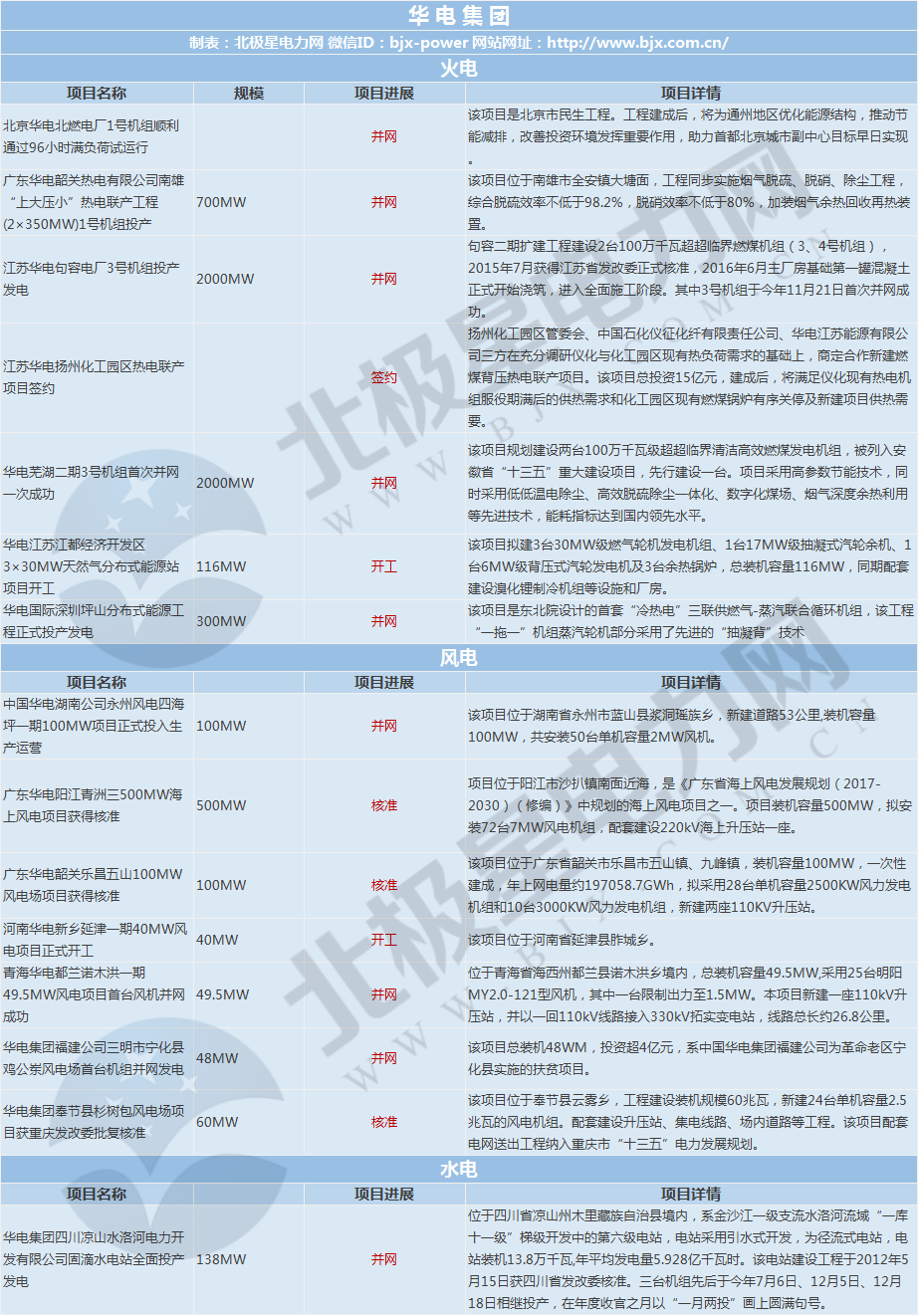 華電集團(tuán)涉及項(xiàng)目動(dòng)態(tài)15個(gè),其中火電項(xiàng)目7個(gè),風(fēng)電項(xiàng)目7個(gè),水電項(xiàng)目1個(gè);
