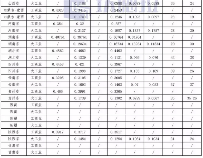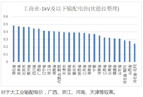 以下為已公布輸配電價的省區(qū)的排名分析,對一般工商業(yè)及其他,湖北、吉林、北京、貴州等較高。