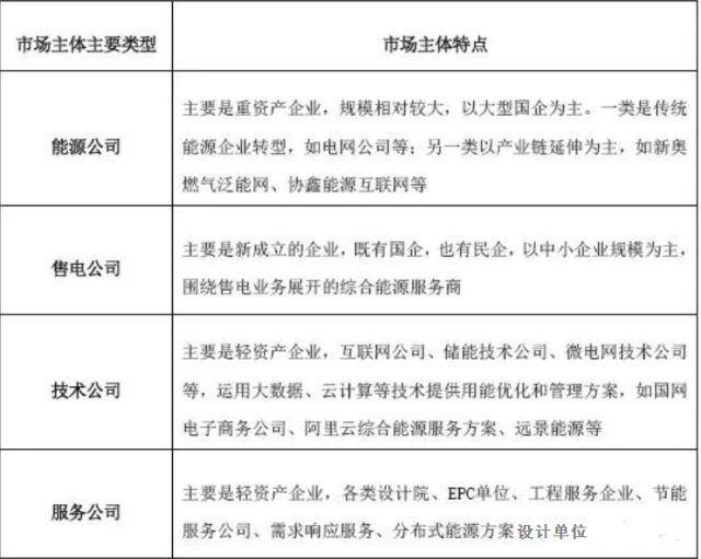 表4 綜合能源服務(wù)主要市場參與主體