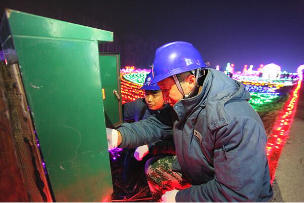 3月2日是農(nóng)歷正月十五元宵節(jié),山東梁山縣供電公司員工戚甫忠、戚一民在賈堌堆農(nóng)家寨為古寨花燈保電。轉(zhuǎn)自[中國(guó)電力新聞網(wǎng)]