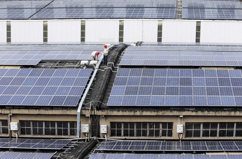 8月23日,江蘇常州新北區(qū)工業(yè)廠房屋頂10MW光伏發(fā)電項目正式并網(wǎng)運行。截止2013年8月該公司已受理分布式光伏發(fā)電項目18個,總容量1420.56378MW。已完成并網(wǎng)容量44MW,,其中全部并網(wǎng)項目10個,并網(wǎng)容量為34.7MW;部分并網(wǎng)項目3個,并網(wǎng)總容量9.3MW。圖為:8月23日,該公司工作人員對江蘇常州新北區(qū)工業(yè)廠房屋頂10MW光伏發(fā)電項目進行并網(wǎng)前調試檢查。