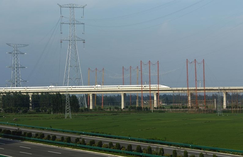 7月14日,1000千伏特高壓淮上線1標(biāo)段進(jìn)入最后半個月的沖刺階段,河南送變電工程公司科學(xué)組織,高效管理,900多名員工不懼高溫酷暑,堅守施工一線,開展跨越合蚌高鐵架線施工,全力確保實現(xiàn)該工程7月底竣工的目標(biāo)。