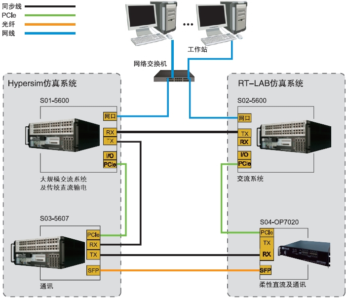 HYPERSIM為交直流電網(wǎng)仿真提供了全方面的解決方案,包含了FACTS、SVC、STATCOM、MMC、HVDC等各電網(wǎng)系統(tǒng)。HYPERSIM實(shí)時(shí)仿真器由使用最新Intel Xeon處理器的CPU仿真器和Xilinx FPGA仿真器組成,CPU仿真器作為大規(guī)模復(fù)雜電力系統(tǒng)電磁暫態(tài)仿真并行處理仿真計(jì)算,F(xiàn)PGA仿真器計(jì)算微妙級(jí)以下的高頻電力電子器件仿真,同時(shí)用作連接外部設(shè)備與CPU仿真器之間的接口單元。