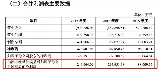 寧德時(shí)代的招股書顯示,2015年、2016年、2017年其歸屬母公司股東凈利潤分別為9.31億、30.22億、39.72億,2016年和2017年同比上一年的增長分別為224.60%和31.44%,保持了較高速的增長。