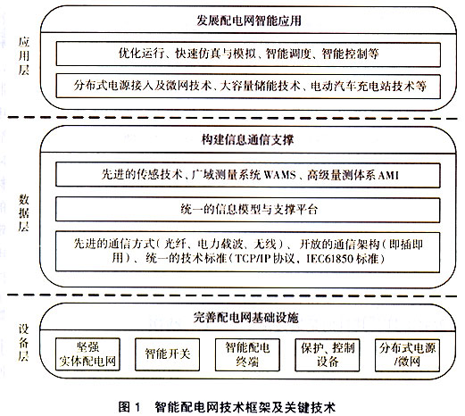 結構合理、網(wǎng)架堅強的配電網(wǎng)實體和安全經(jīng)濟、靈活可靠的智能配電裝備是智能配電網(wǎng)的基礎。但我國傳統(tǒng)配電網(wǎng)基礎比較薄弱,自動化程度較低,距智能配電網(wǎng)的要求存在較大的差距,所以在智能配電網(wǎng)框架最底層的設備層,需要實施和完善以下功能:①建設堅強的實體配電網(wǎng)。智能配電網(wǎng)應改變我國配電網(wǎng)發(fā)展長期滯后、基礎薄弱的現(xiàn)狀,加強和完善配電網(wǎng)的基礎設施建設,建成具有堅強網(wǎng)架結構的配電網(wǎng);未來的配電網(wǎng)應能靈活應對自然災害等突發(fā)性事件。②實現(xiàn)配電裝備的智能化。由于傳統(tǒng)的開關、保護控制設備和配電終端不適應智能配電網(wǎng)的需求,且分布式電源的大量接入對智能配電設備也提出了新的需求,所以智能配電網(wǎng)應實現(xiàn)配電裝備的智能化。